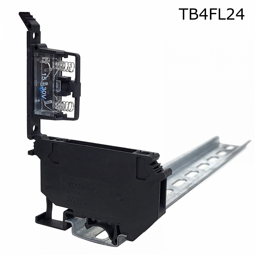 TB4FL24 Клемма винтовая с держателем предохранителя рычажного типа и индикатором 4 мм2, черная, упа