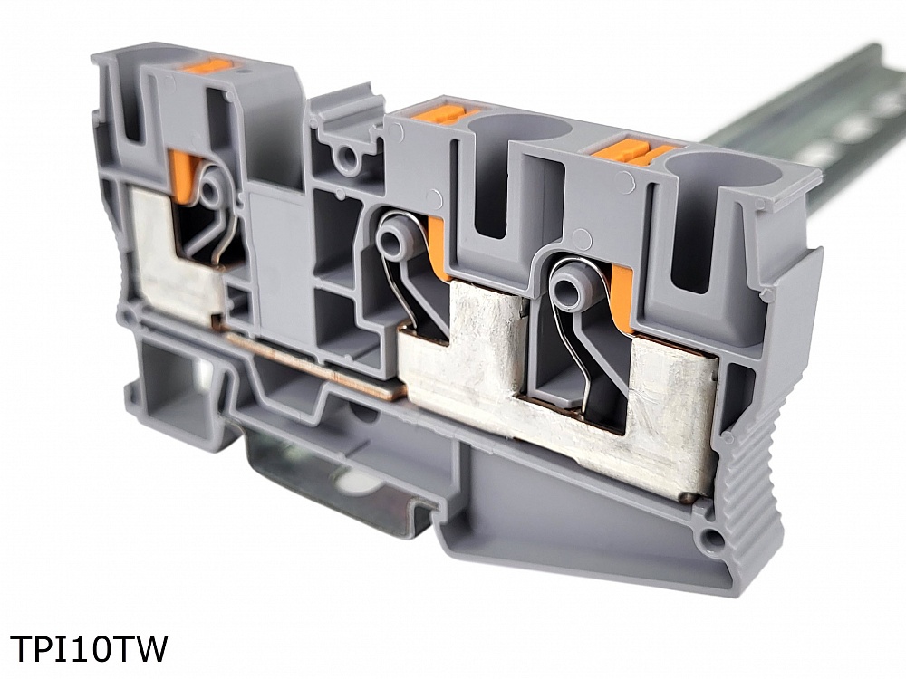 TPI10TW Клемма push-in проходная 3 контакта 10 мм2, серая, упак (18 шт)